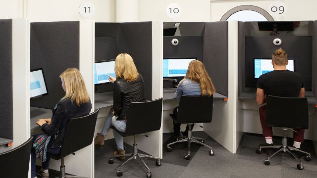 Het theorie-examen wordt afgenomen op een officiële examen locaties van het CBR. Je zit hierbij in een ruimte met meerdere leerlingen, waarbij ieder zijn eigen afgeschermde computer heeft om antwoorden op te geven.